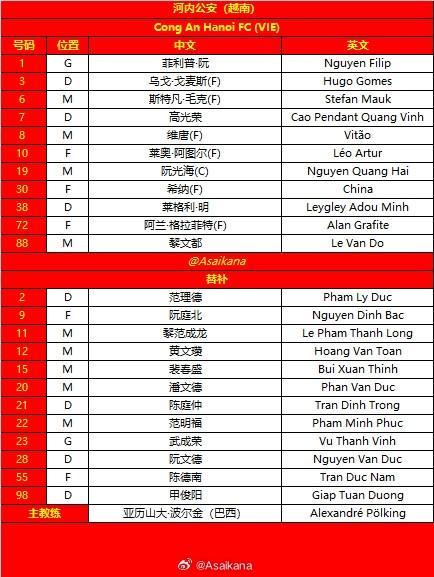 北京时间11月27日20:15,亚冠二级联赛小组赛第5轮,北京国安客场挑战河内公安,目前两队同积5分,此役是两队争夺出线权的关键一战,赛前双方首发阵容陆续公布: